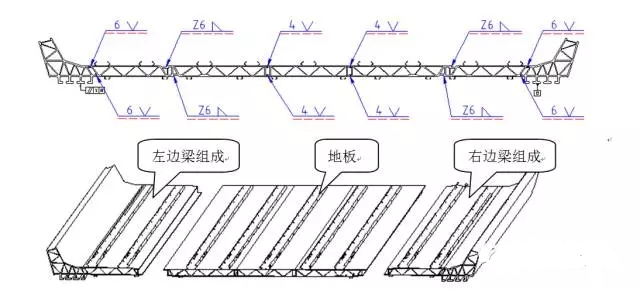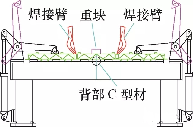 以国内高速列车CRH380D中的底架作为对象,如下图1,该底架由5根铝型材构成。材料是6005A-T6,焊缝质量等级为CPC2,焊缝方法有4V,6V以及Z6三种方法。因为整个底架焊缝长度为27m,为了确保焊接质量的稳定性,选用IGM机器人焊接工艺。拼装次序为先焊接中心地板3块型材,然后焊接左右边梁组成,最终将左右边梁组成与地板进行最终拼装焊接。